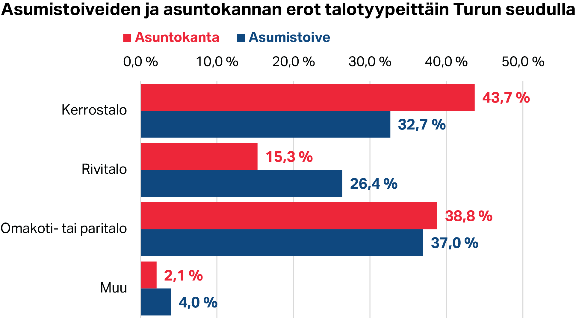 On luonnollista, että Suomen kolmanneksi suurimmalla kaupunkiseudulla valtaosa asunnoista on kerrostaloissa. Vaikka kerrostaloasuminen ei kaikkien kerrostalossa asuvien ensisijainen asumismuoto olekaan, ovat ihmiset valmiita tekemään kompromissin kaupunkiasumisen tuomien etujen, kuten palvelujen läheisyyden ja lyhyiden työmatkojen suhteen verrattuna vastaavan hintaiseen pientaloasumiseen kauempana kaupungista. Pientalotarjonnan osalta yhtiömuotoiselle rivitalorakentamiselle näyttäisi kuitenkin olevan omakotitontteja enemmän tarvetta.