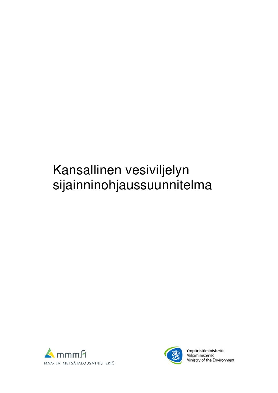 SelvitysKansallinen vesiviljelyn sijainninohjaussuunnitelmaLuonnonarvojen ja -varojen vaihemaakuntakaava Lataa tiedosto: Kansallinen vesiviljelyn sijainninohjaussuunnitelma Avaa selaimessa: Kansallinen vesiviljelyn sijainninohjaussuunnitelma