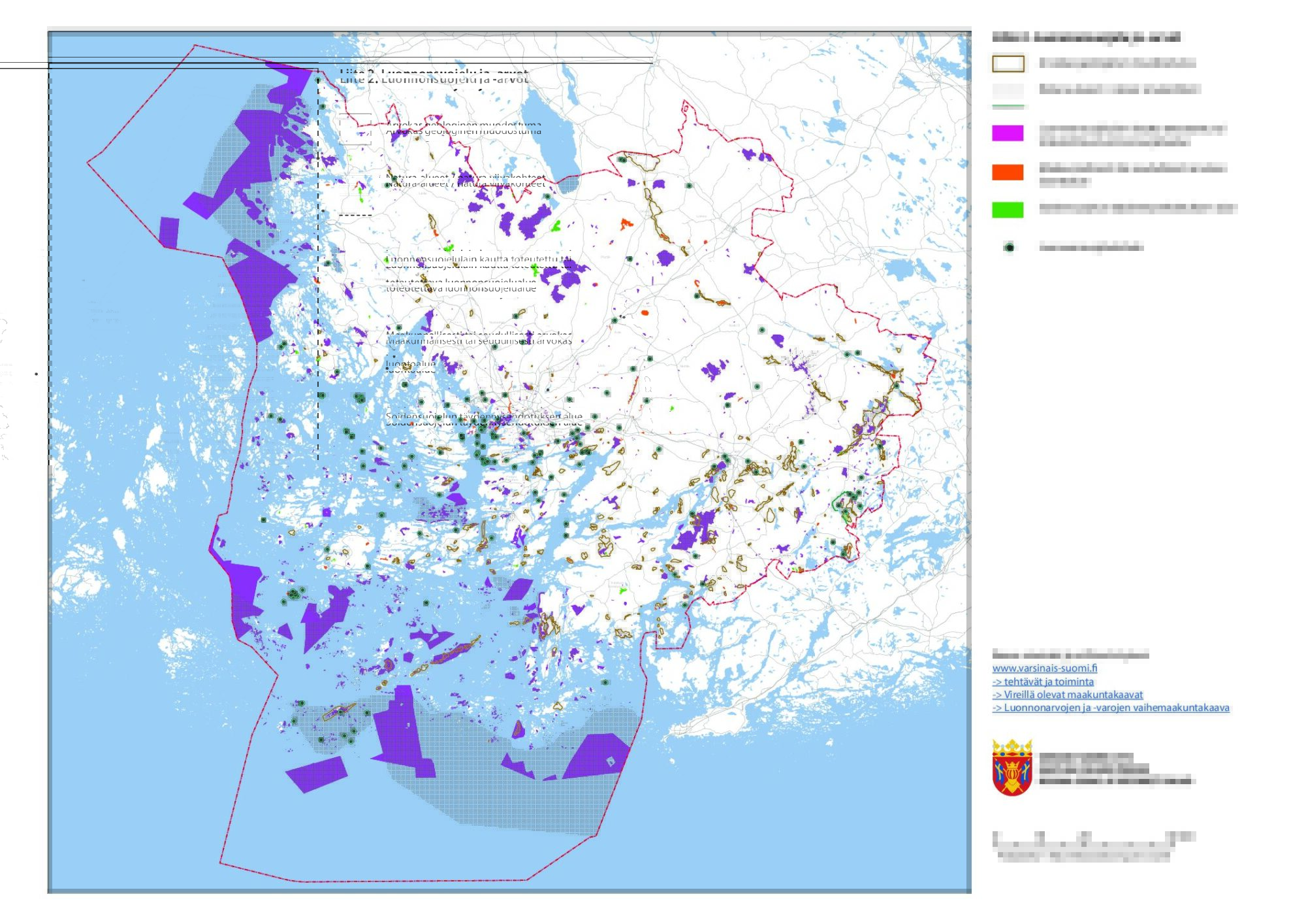 Maakuntakaava-aineistoVarsinais-Suomen luonnonarvojen ja -varojen vaihemaakuntakaavakarttaLuonnonarvojen ja -varojen vaihemaakuntakaava Lataa tiedosto: Varsinais-Suomen luonnonarvojen ja -varojen vaihemaakuntakaavakartta Avaa selaimessa: Varsinais-Suomen luonnonarvojen ja -varojen vaihemaakuntakaavakartta