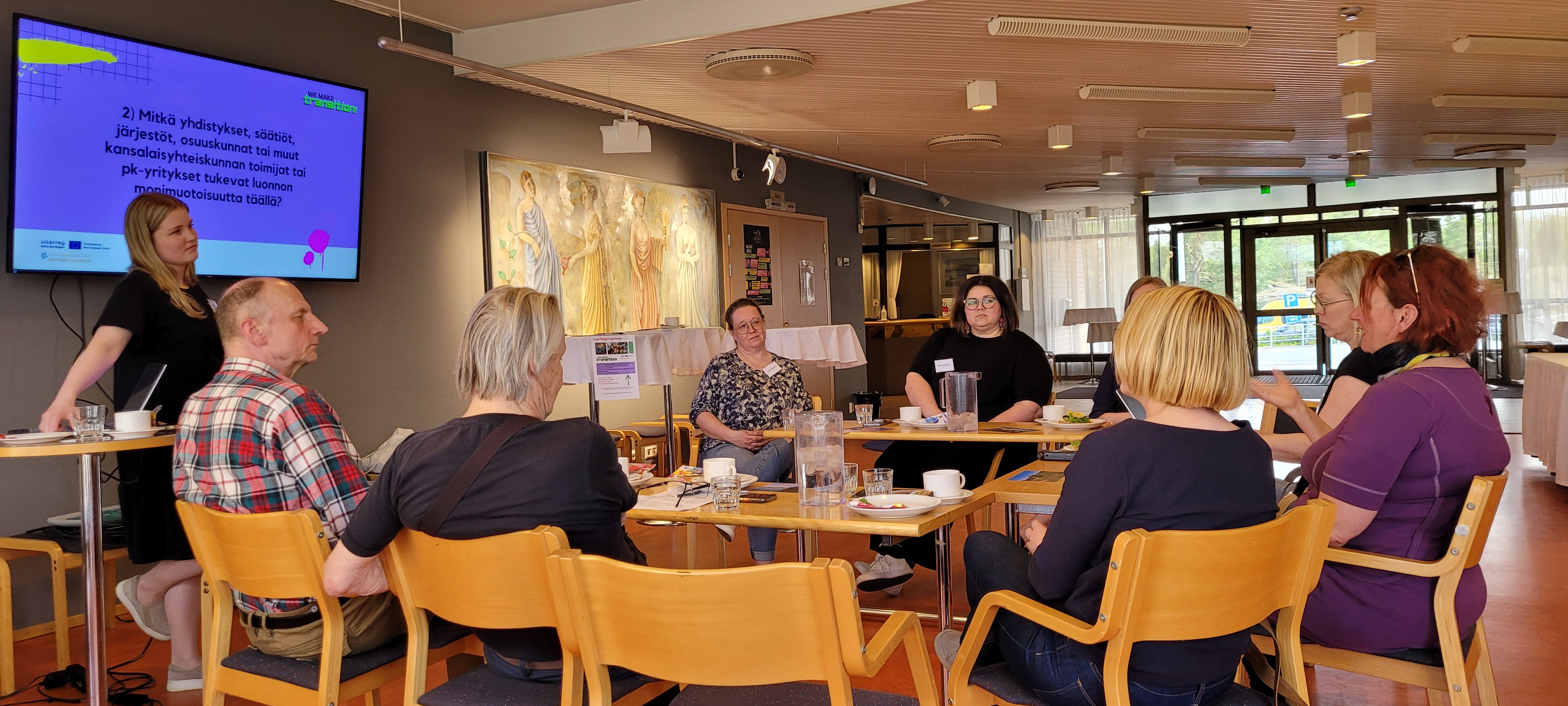 Luonnon monimuotoisuus Uudessakaupungissa herätti ajatuksia sekä virkistysalueista että metsistä. Esimerkiksi virkistysalueilla tapahtuvista luonnon monimuotoisuuden edistämisen keinoista – vaikkapa kaatuneiden puiden jättämisestä puistoalueelle – olisi hyvä viestiä kuntalaisille enemmän. Keskustelu paljasti myös energiantuotannon ja luonnon monimuotoisuuden välisen yhteyden, johon taatusti palaamme tulevissa työpajoissa.