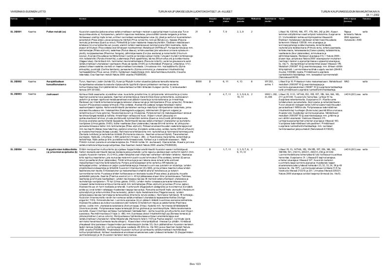 RegionalplanmaterialTabell 03 över naturobjekt i landskapsplanen för Åbo stadsregionRegionalplan kombination