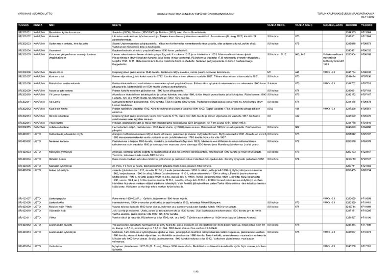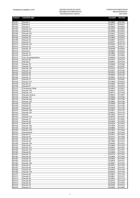 RegionalplanmaterialTabell 01 över fornminnen i landskapsplanen för Åbo stadsregionRegionalplan kombination