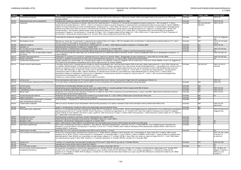 RegionalplanmaterialTabell 02b för Åbo stadsregionens landskapsplan över skyddsvärda helheter i den byggda miljön i RunsalaRegionalplan kombination