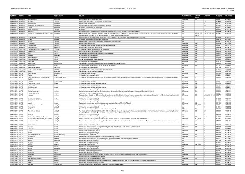 RegionalplanmaterialTabell 02 över skyddsvärda helheter i den byggda miljön i Åbo stadsregionens landskapsplanRegionalplan kombination