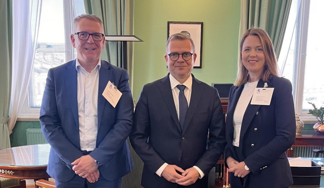 Egentliga Finlands landskapsdirektör Jyri Arponen och förbundets intressebevakningsdirektör Malla Rannikko-Laine träffade statsminister Petteri Orpo i Statsrådsborgen torsdagen den 25 september.