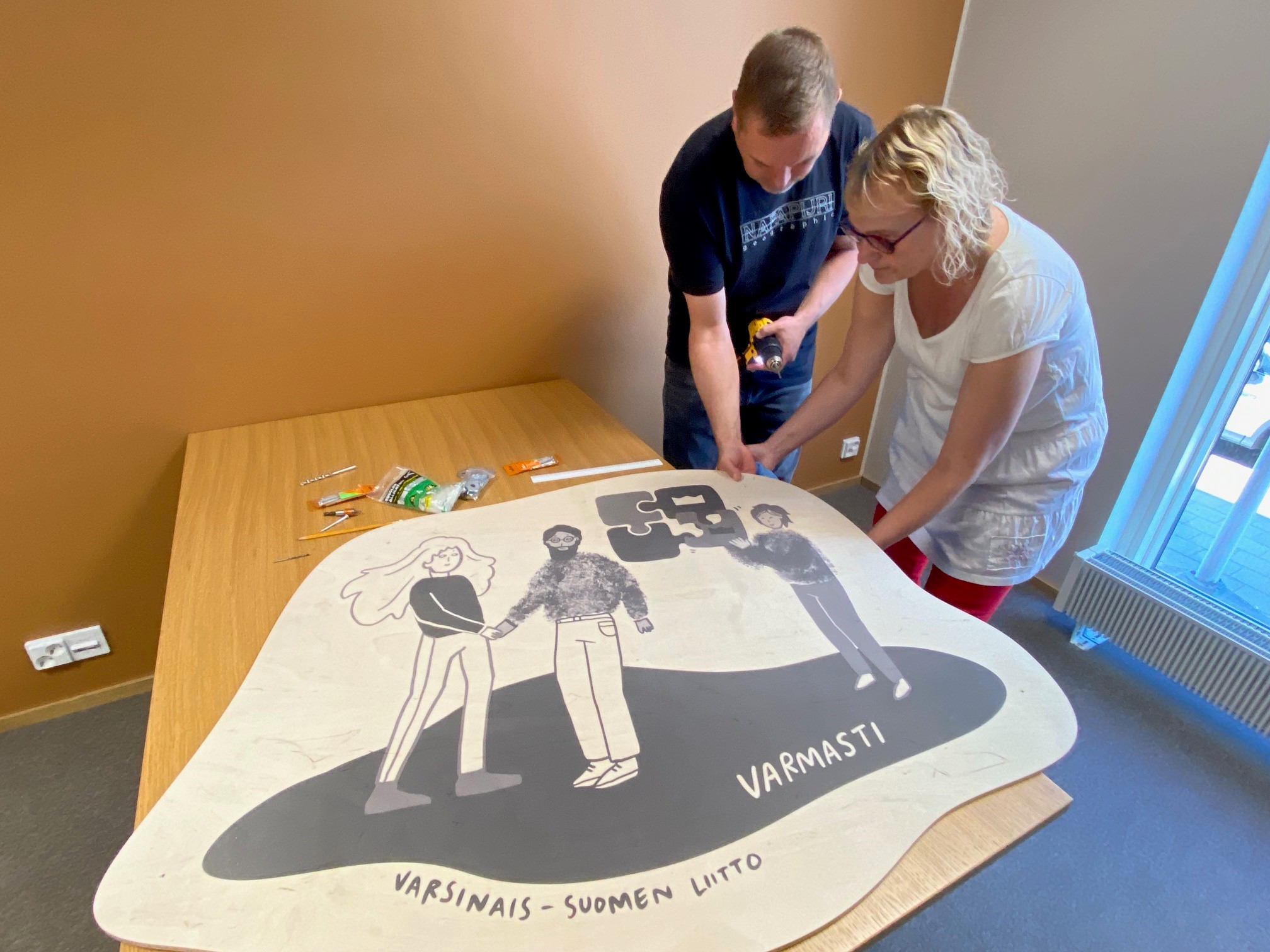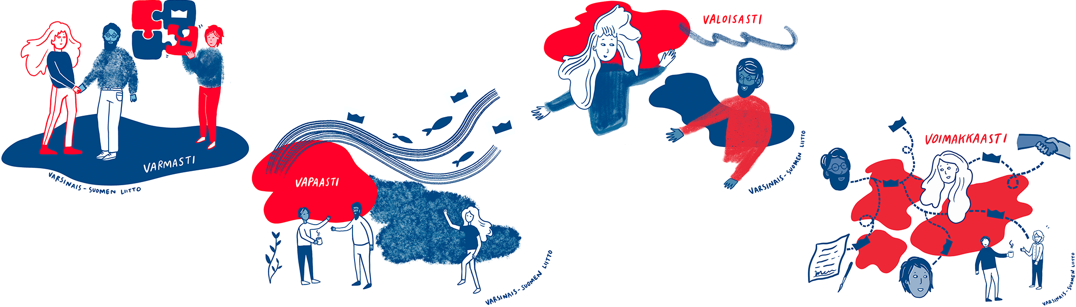 Me Varsinais-Suomen liitossa haluamme tehdä töitä valoisasti, vapaasti, voimakkaasti ja varmasti. Nyt saamme ihailla näitä arvoja myös toimistomme seinillä, kun arvokuvituksista teetettiin upeat vaneriset taulut muutamaan kokoushuoneeseemme.